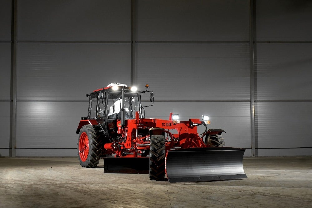 Использование шасси официально согласовано с Минским тракторным заводом, а грейдер имеет государственную сертификацию. Дополнительный передний привод значительно увеличивает тяговое усилие (свыше 4300 кг), повышает курсовую устойчивость и улучшает торможение. Это гарантирует высокую производительность даже на уплотненных грунтах и при очистке от смерзшегося снега.